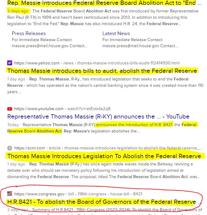 In defiance of that gluttony, just days ago, Rep. Thomas Massie introduced a bill called the FEDERAL RESERVE ABOLITION ACT, calling for the complete abolishment of the Board of Governors and all its banks within a year.