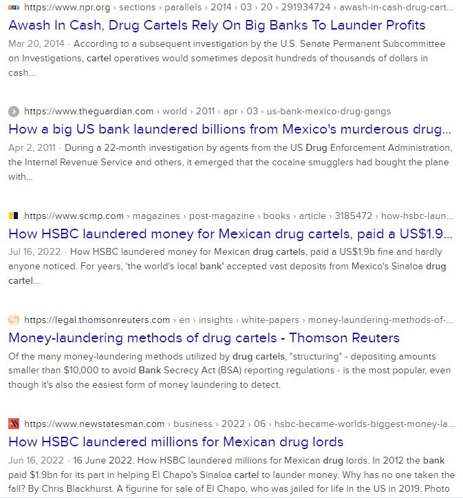 Cartels are often compared to or called syndicates, which definitely gives them the more corporate face they often deserve. Here it’s important to realize, not just that these entities are working together, but that they’re now doing so for purposes that go way beyond “regulating prices” or “passing certain laws”, but to also regulate away every right and freedom we have—attempting to regulate our thoughts and speech even. The propaganda news has become a cartel in its own right, now regulating group think narratives handed down by its globalist owners. In fact, it was author Eustice Mullins, whose tireless research showed that the same board members were sitting on the boards of multiple, large multinational corporations. These cartels do indeed overlap and form trusts with each other for mutual benefit. The well-known bank, HSBC, laundering money for Mexican drug cartels in a good example: