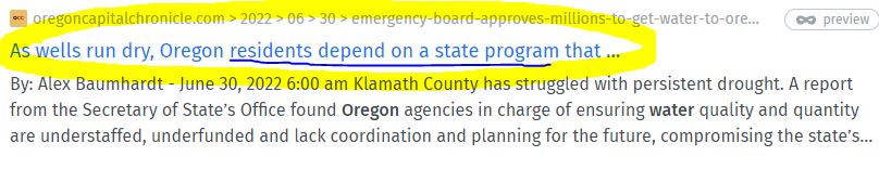 Another unfortunate ploy driven by Capitalist Communists in creating that lack, has happened in both Southeast Oregon and Southeast Arizona: intentionally over farming the aquifers. In Oregon, farmers were literally paid, via a state funded “drought relief” program, to over farm the aquifers—to use the water faster than nature could replenish it—even after competent scientists warned against it. In Arizona, “Big Agriculture” came in and did it themselves, making homesteads in the area worthless as their personal wells dried up due to aquifer depletion. Drilling new wells is expensive. Most homesteads can afford to drill around 300 feet. Large corporations can afford to drill 1000 feet. More if they intend to suck out every last drop. This has led local governments to begin funding water tank deliveries to affected areas. As a result, people who tried desperately to live quiet lives away from government intrusion, are now dependent on those governments for their continued survival. In the Clark household, we refer this kind of malfeasance as “blocking the exits”.